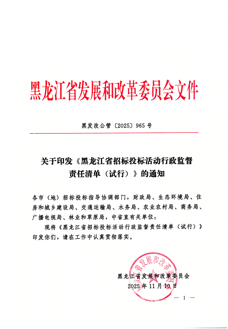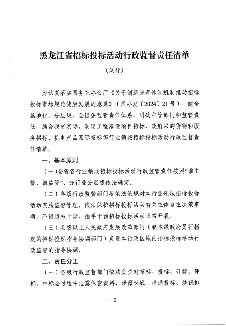 關于印發《黑龍江省招標投標活動行政監督責任清單(試行)》的通知