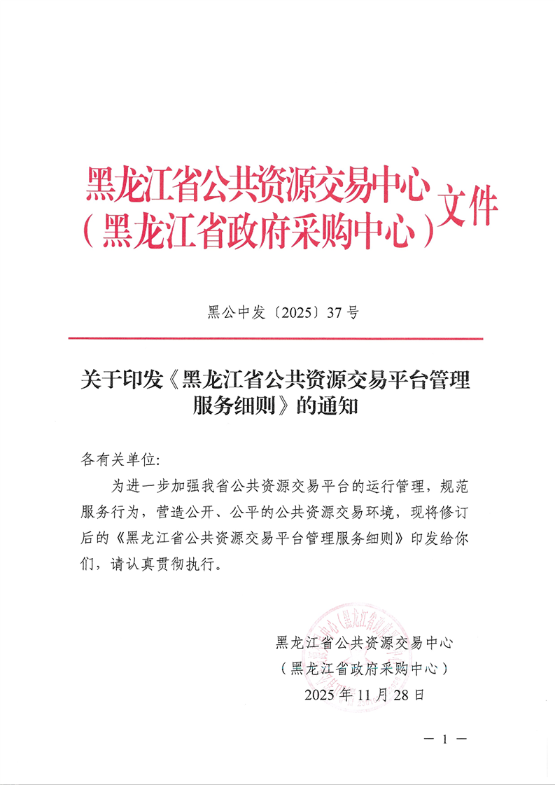 關于印發《黑龍江省公共資源交易平臺管理服務細則》的通知