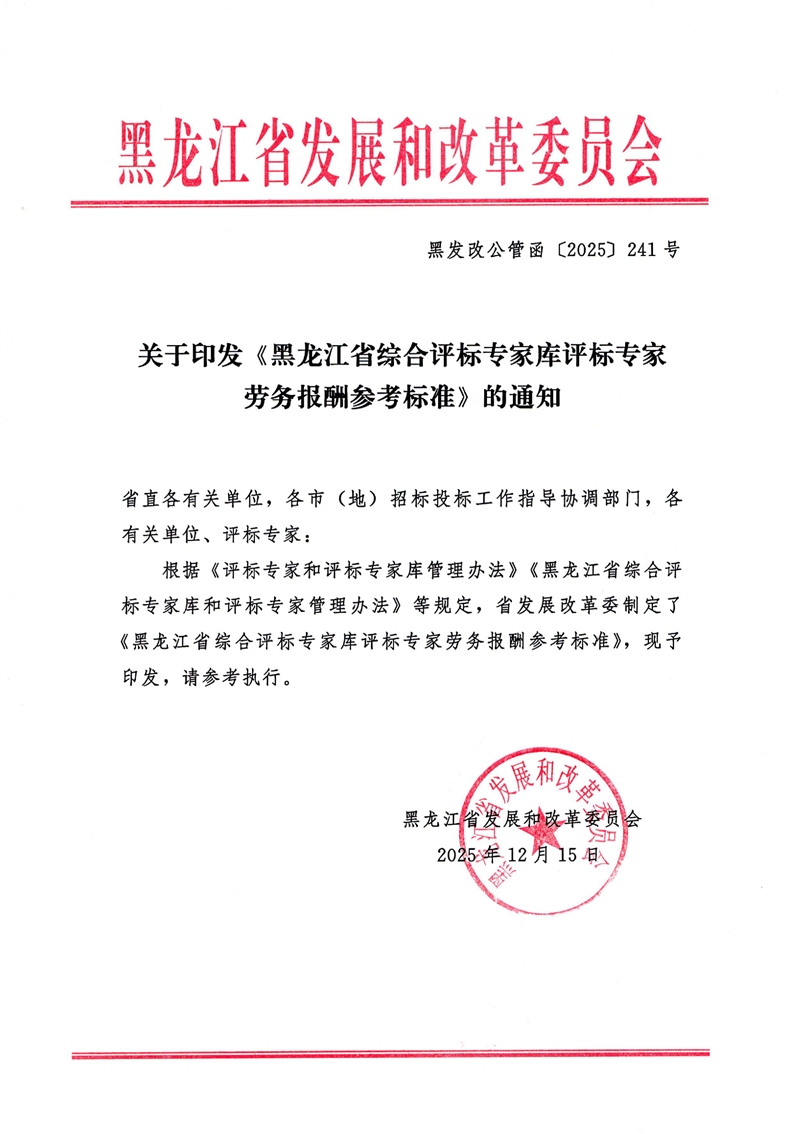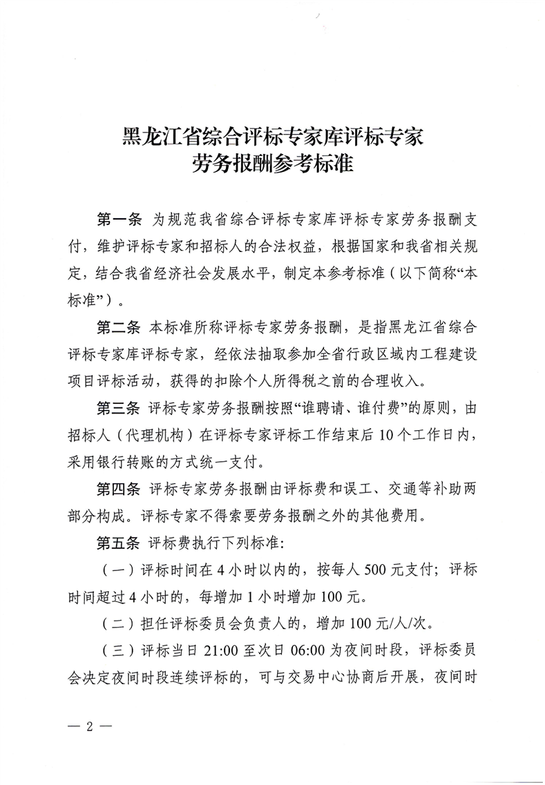 關于印發《黑龍江省綜合評標專家庫評標專家勞務報酬參考標準》的通知